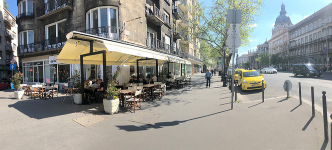 During the afternoon and evening they serve light dishes including soups, various salad options and freshly prepared sandwiches. All cakes are home-made so they are a must, but you can also enjoy a fine Hungarian wine or local craft beer on the terrace while watching people stroll up and down the street.